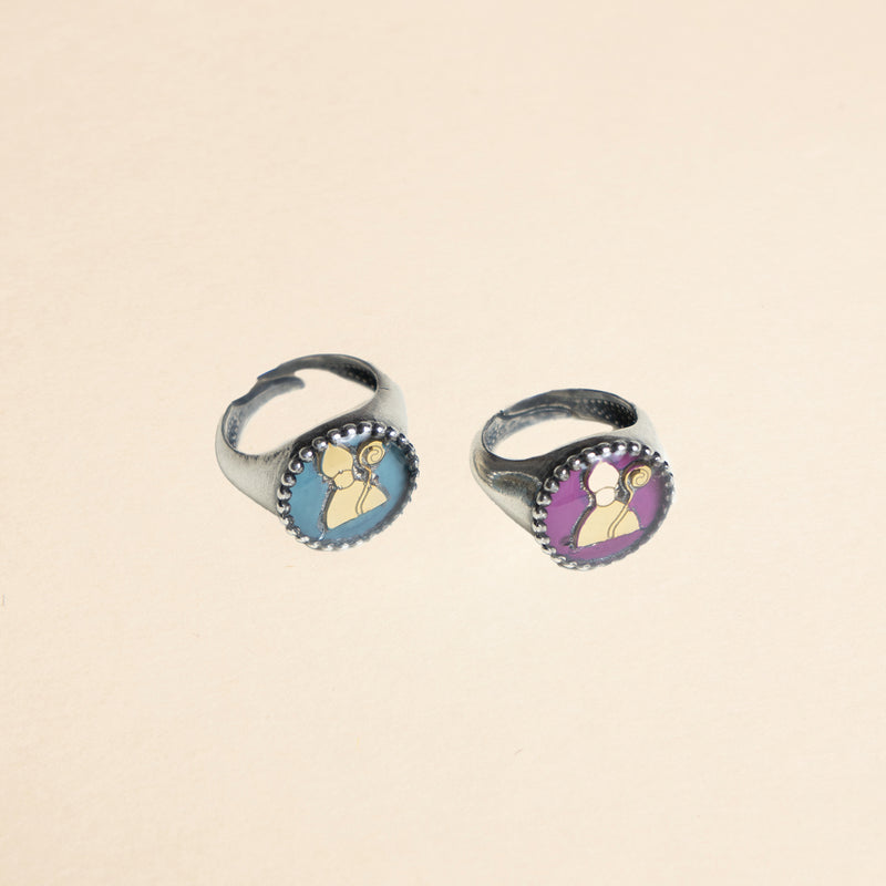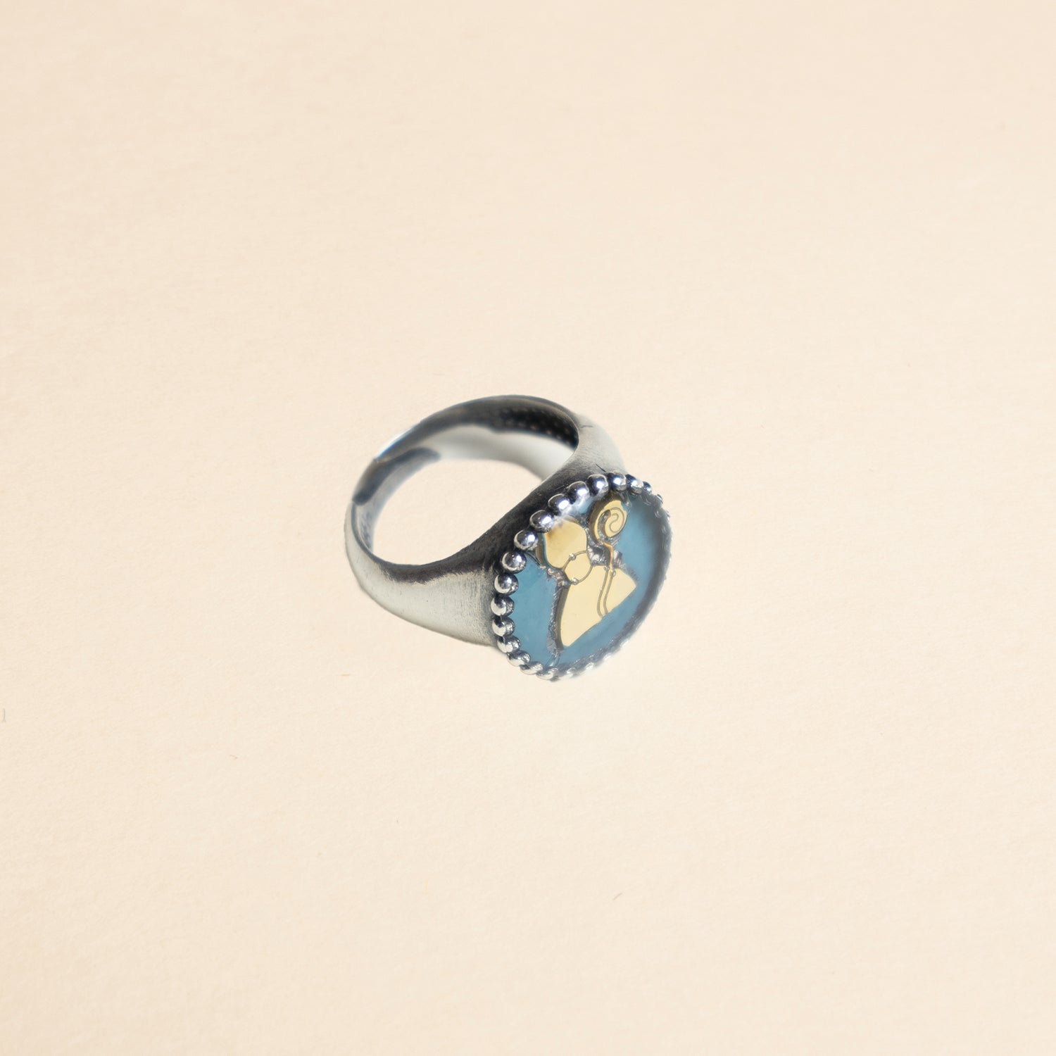 The chevalier rings, which in French means knight, were worn on the left hand and were used to imprint one's coat of arms on the wax seal as a symbol of authenticity.