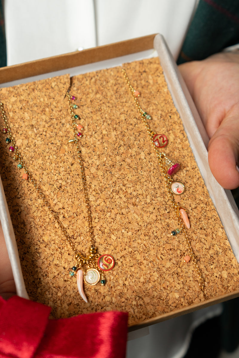 Le parti metalliche sono realizzati in ottone galvanizzato oro, per essere nichel free ad anallergico.