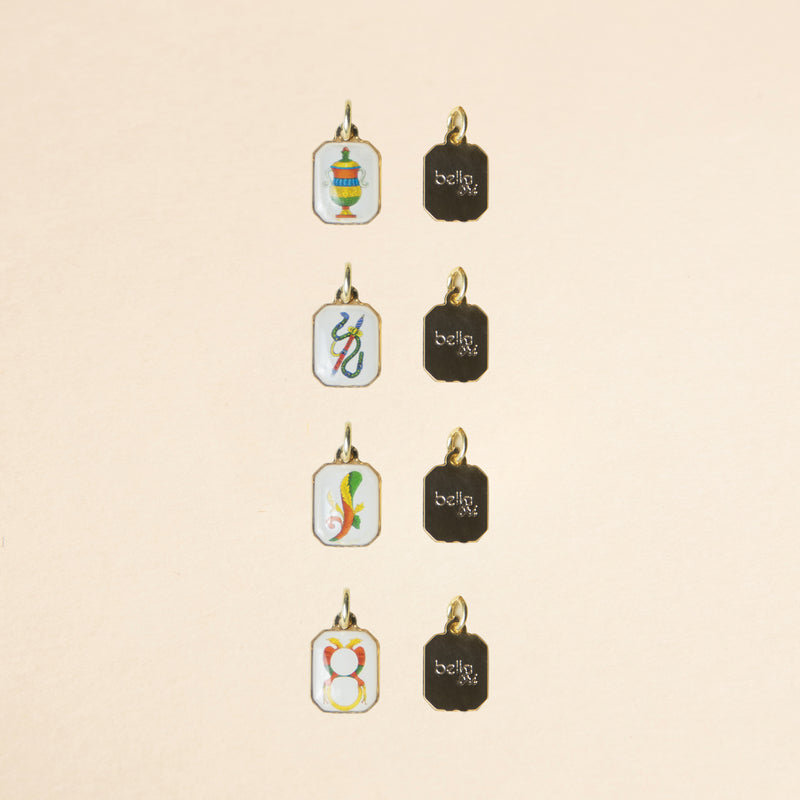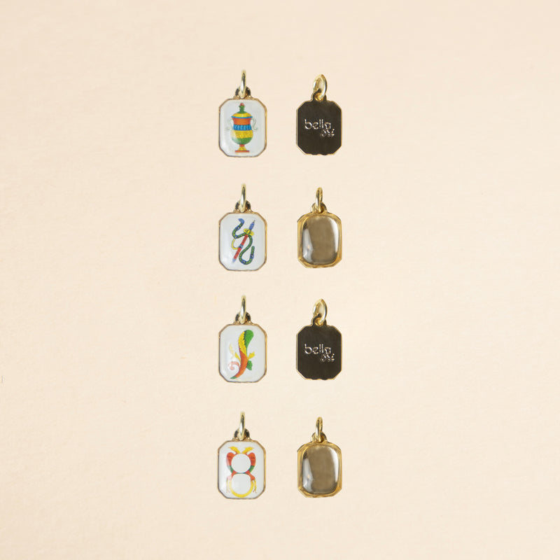 Il charms con la resinatura fronte e retro offre una maggiore protezione a contatto con la pelle, sudore e creme. Il charms con la resinatura fronte garantisce al retro un metallo galvanizzato dorato o argentato, anallergico e nichel free.
