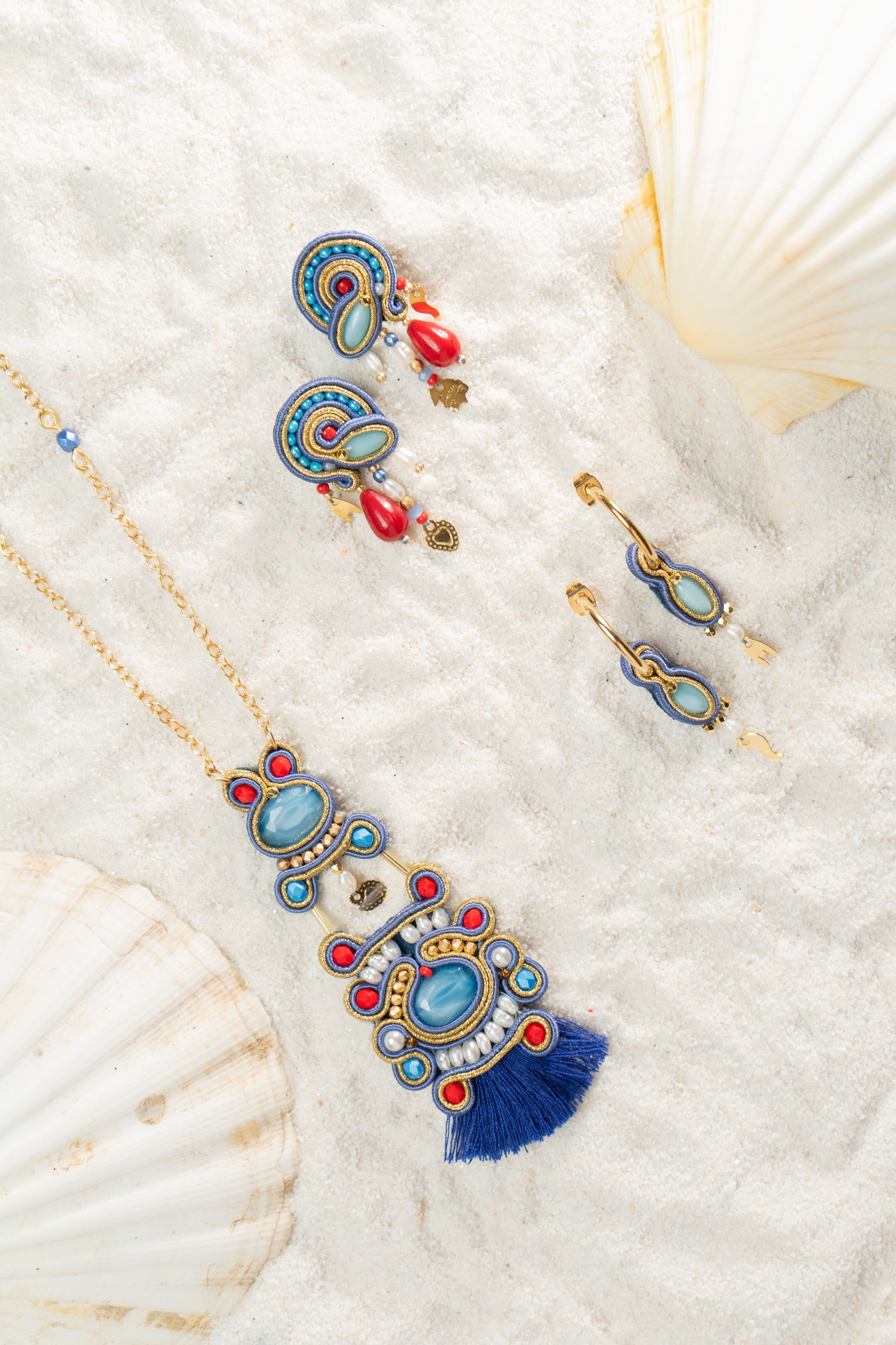 A romantic and evocative name for an entirely hand-sewn jewelery collection, inspired by the seascape and its blue reflections.
