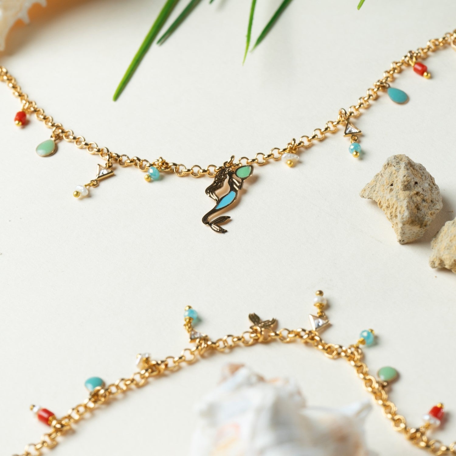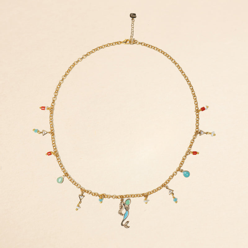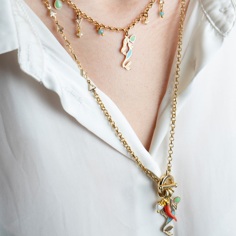 Porta con te l'incanto e la magia della leggenda di Partenope con la collana Multicharms della collezione Partenope in rosso. I piccoli charms raffigurano simboli della sirena e delle storie legate al Castello dell'Ovo.