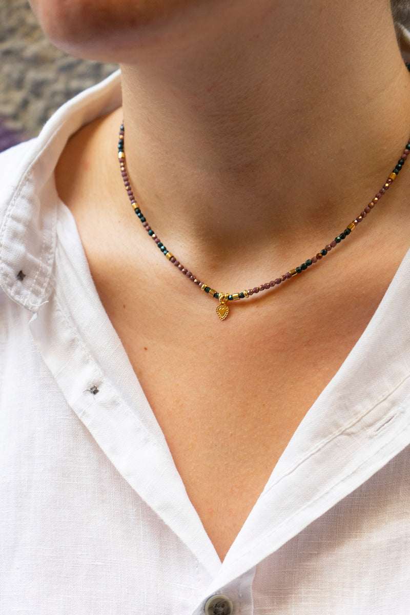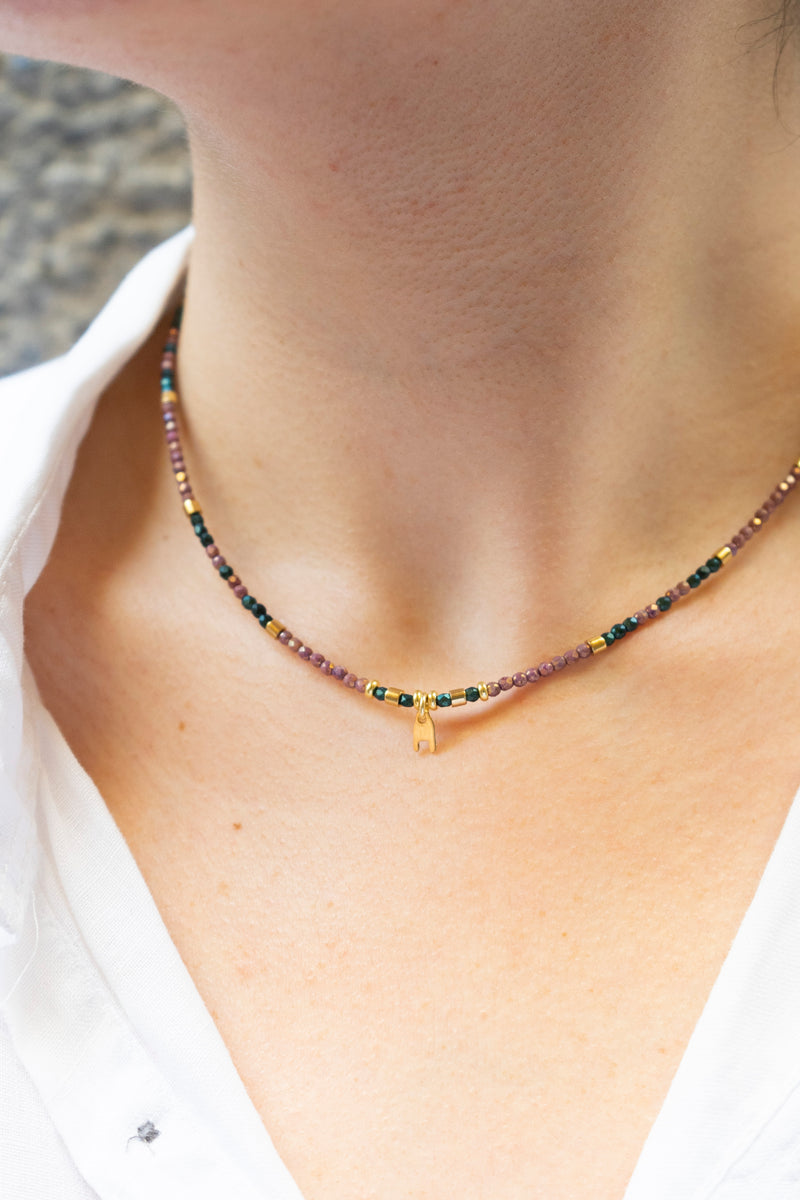Collana realizzata con filo d'acciaio e componenti in ottone galvanizzato oro, pensata per dare un tocco di colore e carattere ai tuoi look estivi. Super colorata, leggera e perfetta per la bella stagione (ma da tenere lontana da acqua, profumi e doccia!).