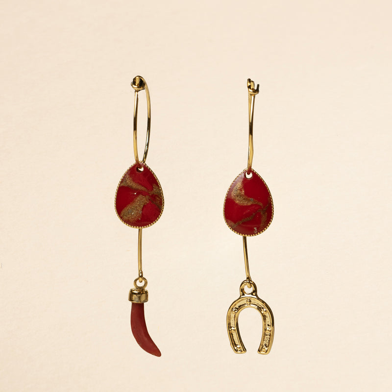 Earrings made of 925 silver and metal components in gold galvanized brass, nickel free and hypoallergenic .