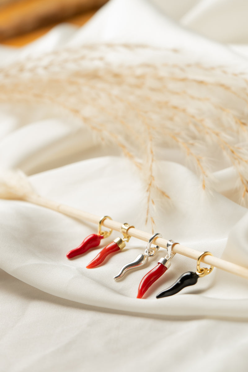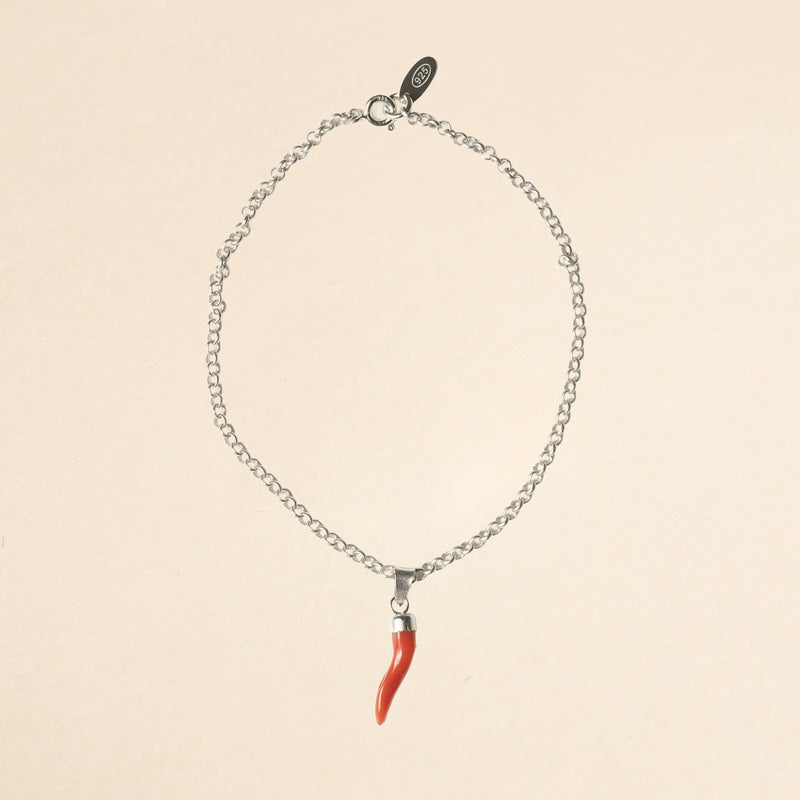 Il bracciale corno corallo, realizzato con un charm in corallo rosso ed argento 925, è il portafortuna napoletano per eccellenza: protegge dal malocchio e attira la buona sorte.
